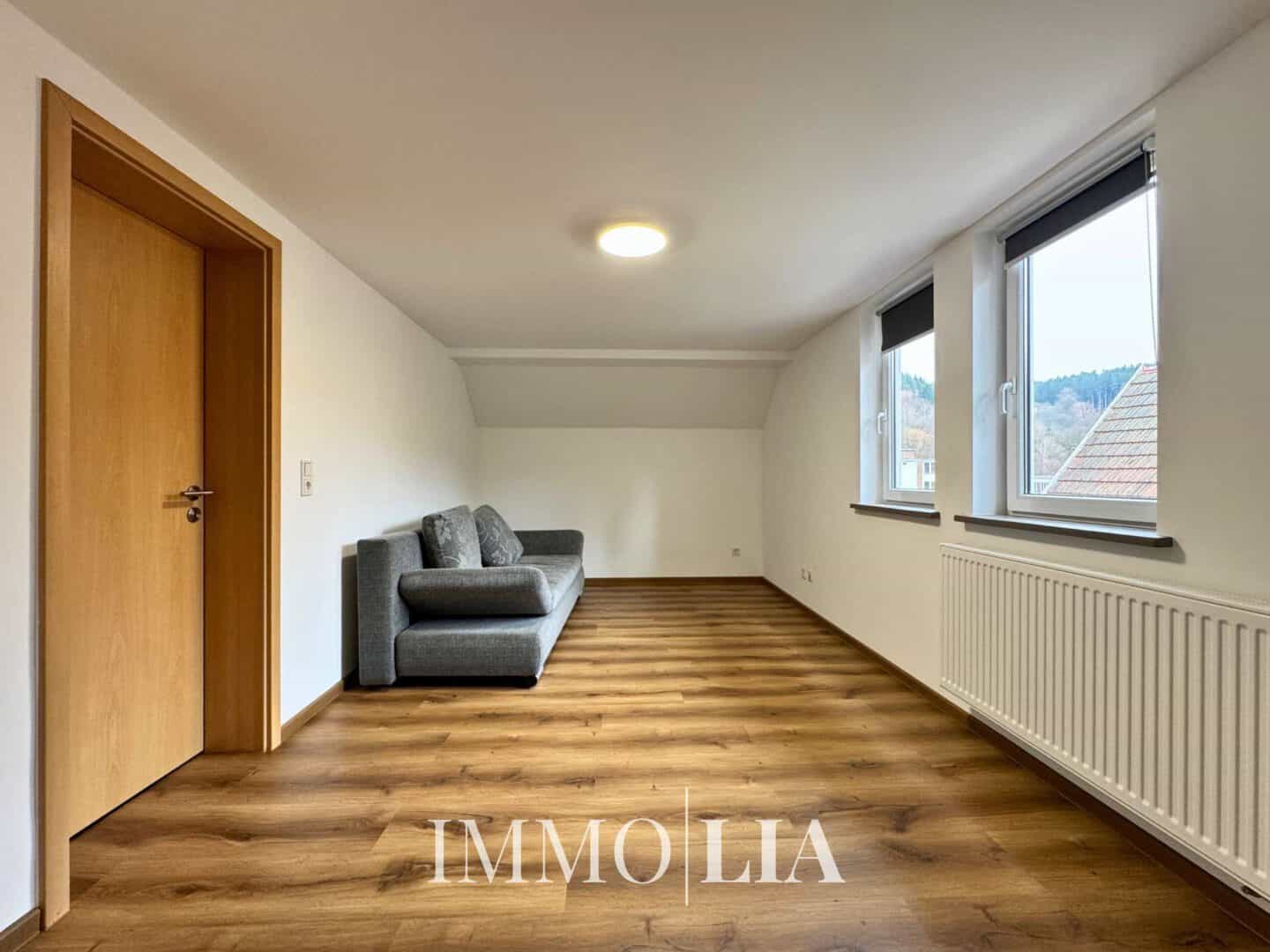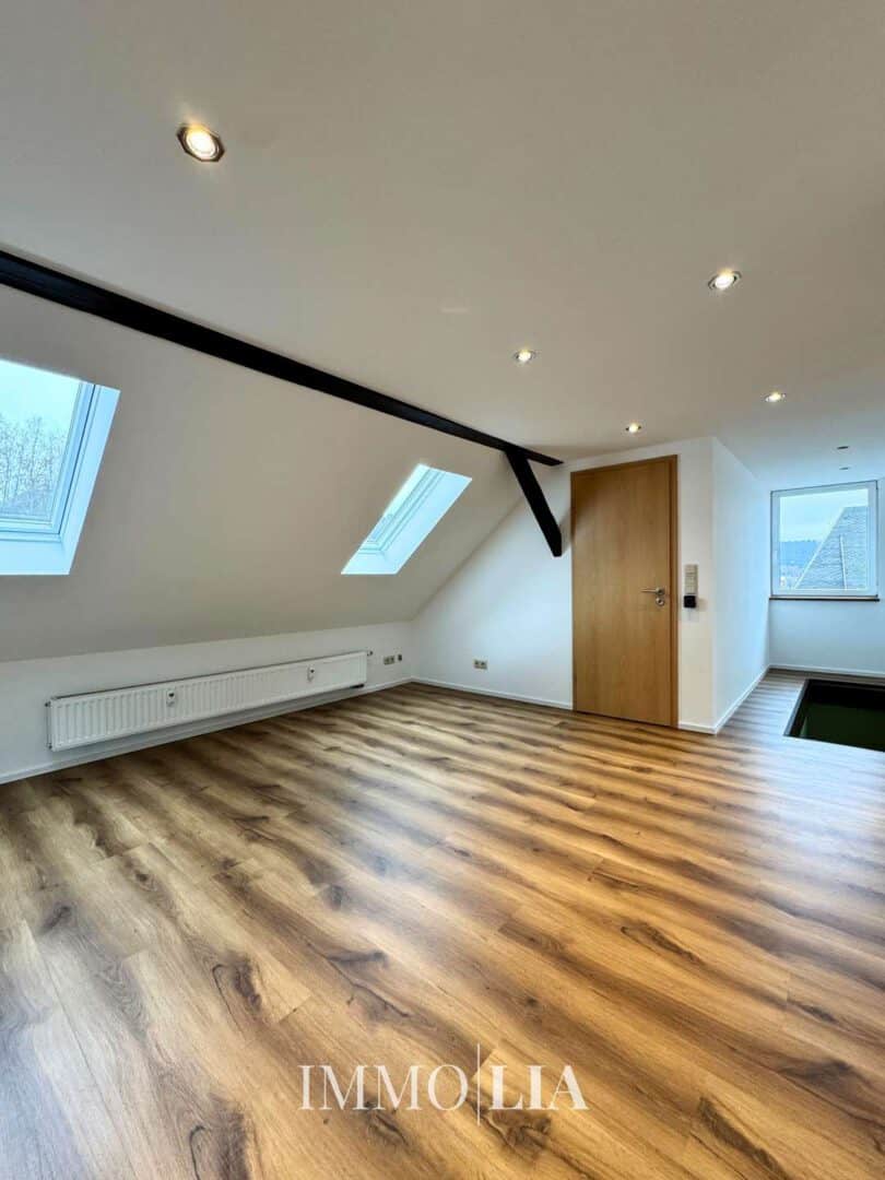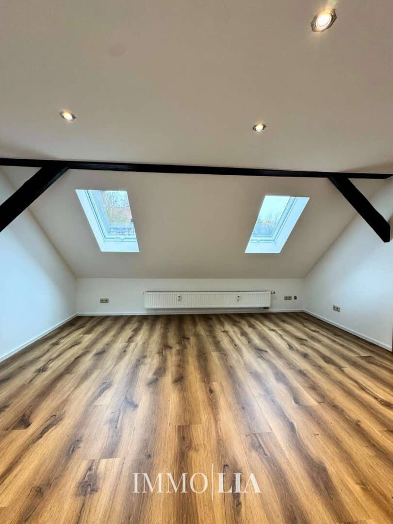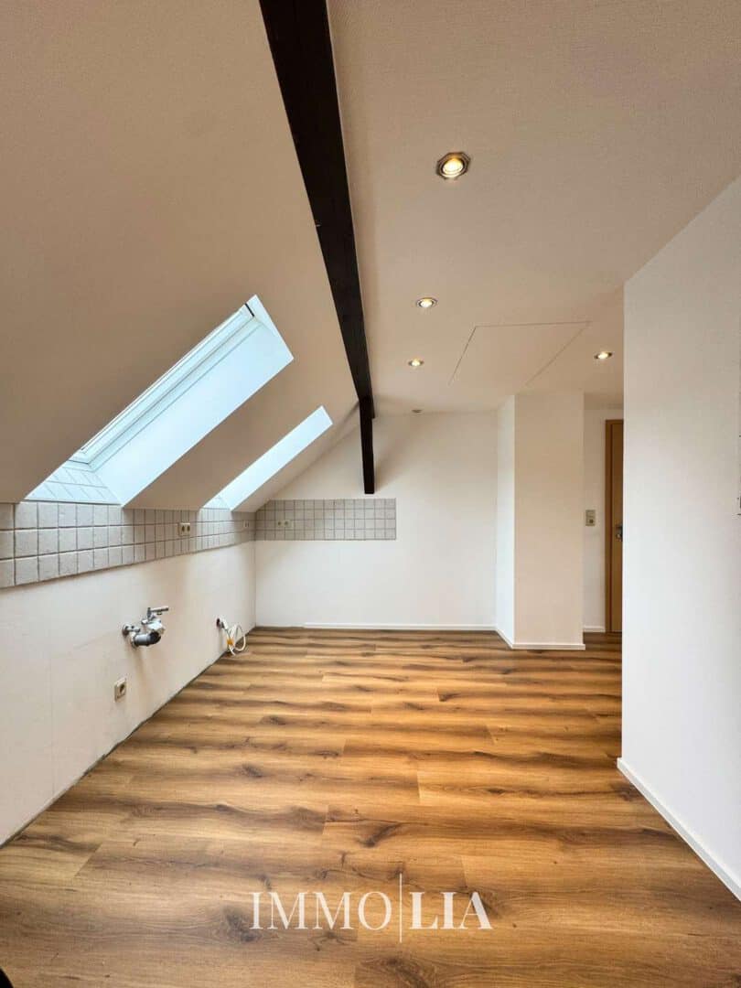 Die renovierte 3 Zimmer Dachgeschosswohnung überzeugt mit einem hellen und einladenden Wohn- Essbereich.