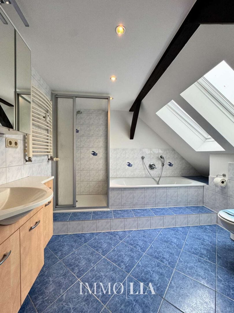Das Tageslichtbad mit Badewanne und separater Dusche lässt keine Wünsche offen.